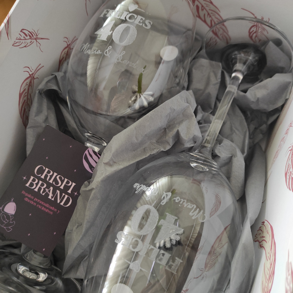 Kit de vino + 2 copas personalizadas + caja madera personalizada
